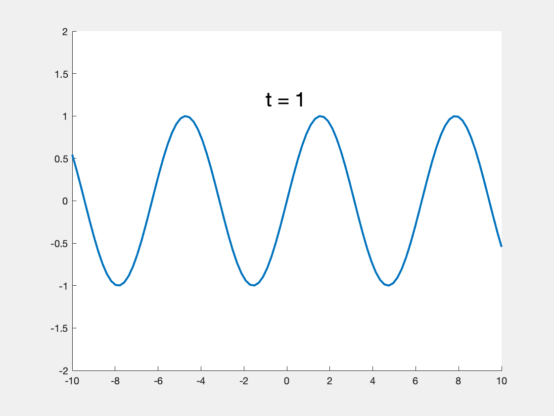 In this function, represents the position and represents time, the function represents the amplitude of the wave at given time and position, and function determines the shape of the wave. The constant represents the wavespeed, and constant represents the initial phase. For example, if we plugin and . The function describes a traveling sinusoidal wave.